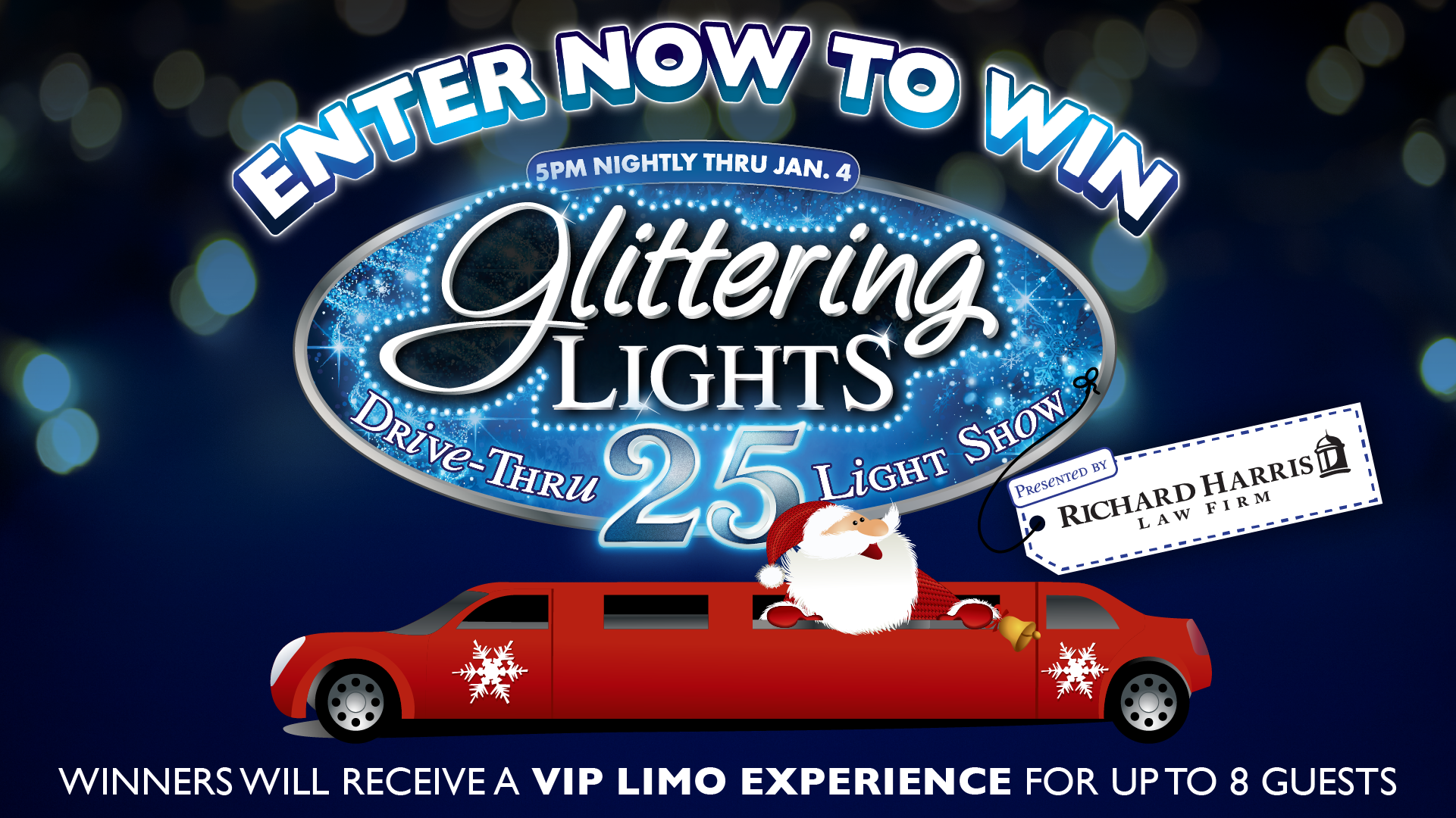 Richard Harris Law Firm is giving ONE lucky winner Glittering Lights Tickets and Limo Experience for up to 8 People