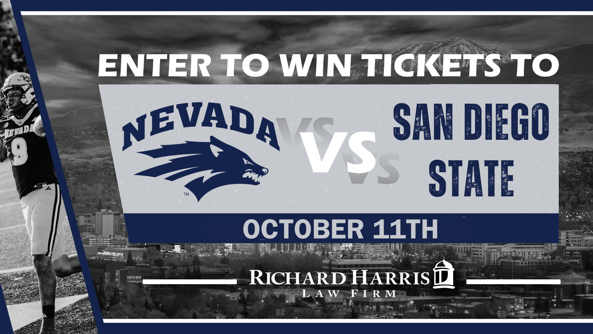 - Eligibility: This Campaign is open only to those who sign up at https://richardharrislaw.com/giveaways/nevada-vs-san-diego-state/. You must be 21 years or older as of the date of entry to be eligible to win. The Campaign is only open to legal residents of Nevada and is void where prohibited by law. The Campaign is subject to all applicable federal, state, and local laws and regulations. Void where prohibited.