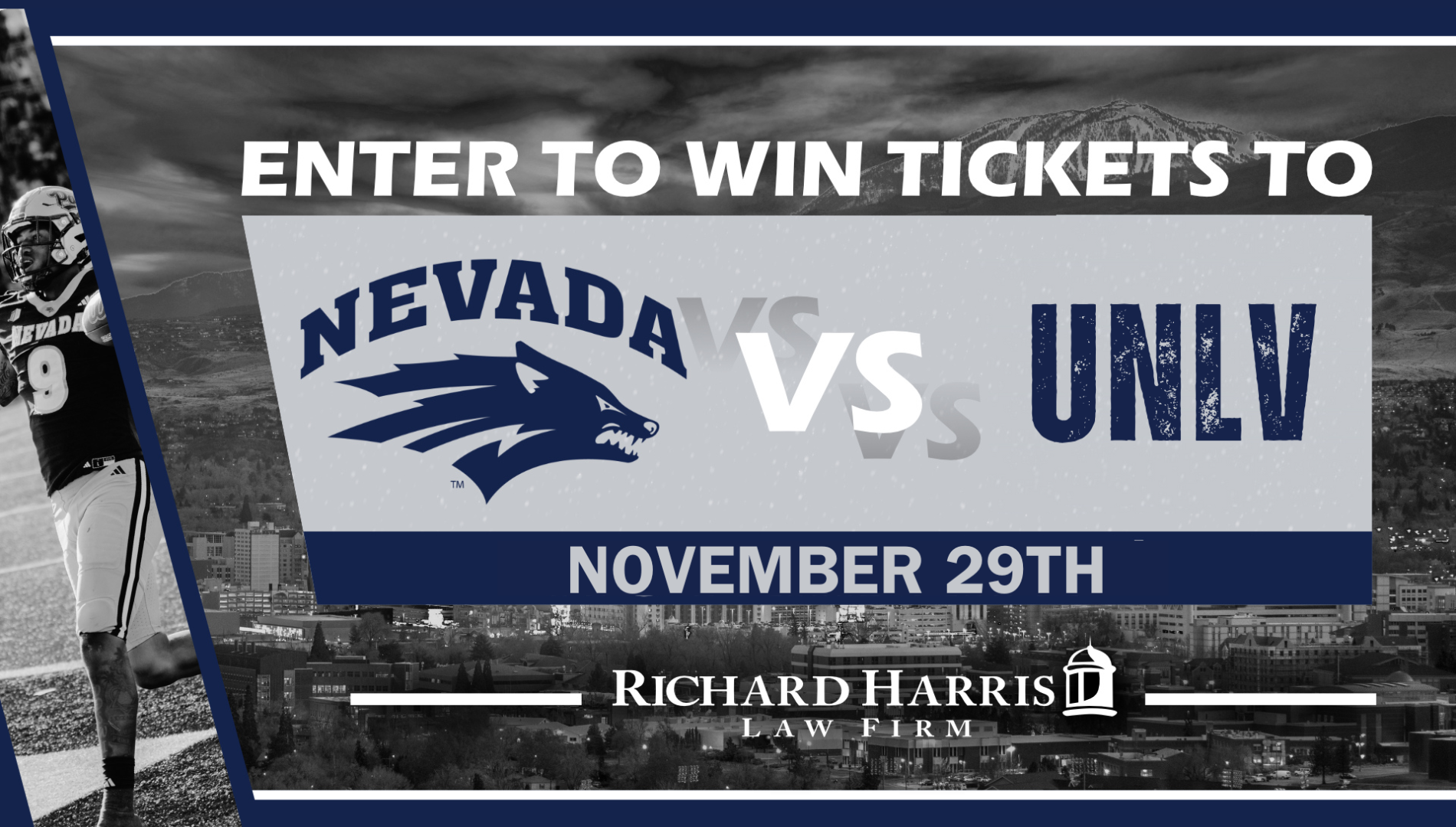 - Eligibility: This Campaign is open only to those who sign up at https://richardharrislaw.com/giveaways/nevada-vs-unlv-2/. You must be 21 years or older as of the date of entry to be eligible to win. The Campaign is only open to legal residents of Nevada and is void where prohibited by law. The Campaign is subject to all applicable federal, state, and local laws and regulations. Void where prohibited.